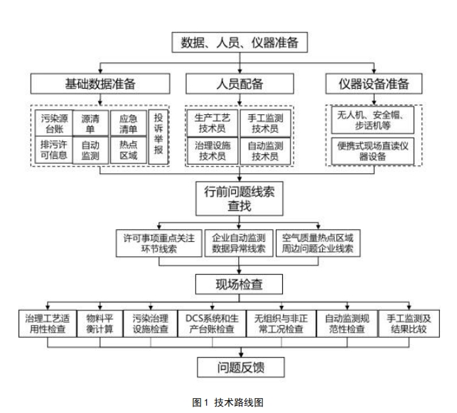 生產(chǎn)工藝檢查、治理設施檢查、自動監(jiān)測規(guī)范 性檢查和現(xiàn)場手工監(jiān)測四方面工作協(xié)同進行,通過全面的檢查結果 系統(tǒng)性分析大氣污染治理存在的突出問題。