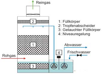 豬場用除臭設備的原理比較簡單,和工業(yè)除臭設備的填料塔(圖一)原理一樣,就是讓臭氣經(jīng)過填料,讓臭氣成份和噴淋液充分接觸,利用液相來吸收氣相,因為豬舍臭氣中的主要成份是氨氣和粉塵,這些物質(zhì)相對都易溶于水,因而能達到除臭效果。