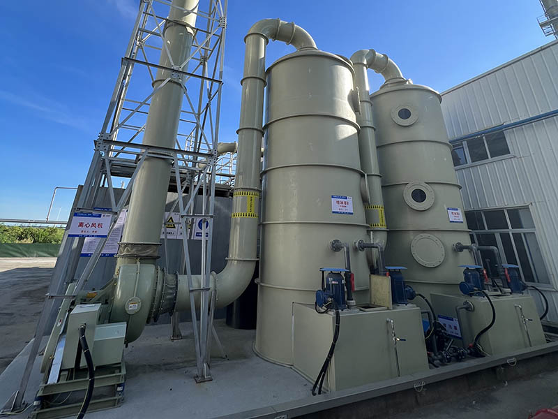 化學(xué)洗滌塔為雙段水平逆向流填充式濕式洗滌塔,一般第一段以硫酸去除NH3,第二段以NaOH及NaClO去除H2S以及其他有機(jī)氣體。塔槽為玻璃鋼強(qiáng)化塑料材質(zhì),相關(guān)之檢視窗、采樣口及各循環(huán)液體、化學(xué)藥液注入口及排水口等配合機(jī)能設(shè)置,并設(shè)置必要的操作平臺。洗滌塔下方設(shè)置循環(huán)水泵、溢流、排水、自動補水等裝置。洗滌塔填料由PE或PP或PVC等耐腐蝕材料成形之多孔球體或具有不堵塞與不結(jié)塊的多孔型材料構(gòu)成。